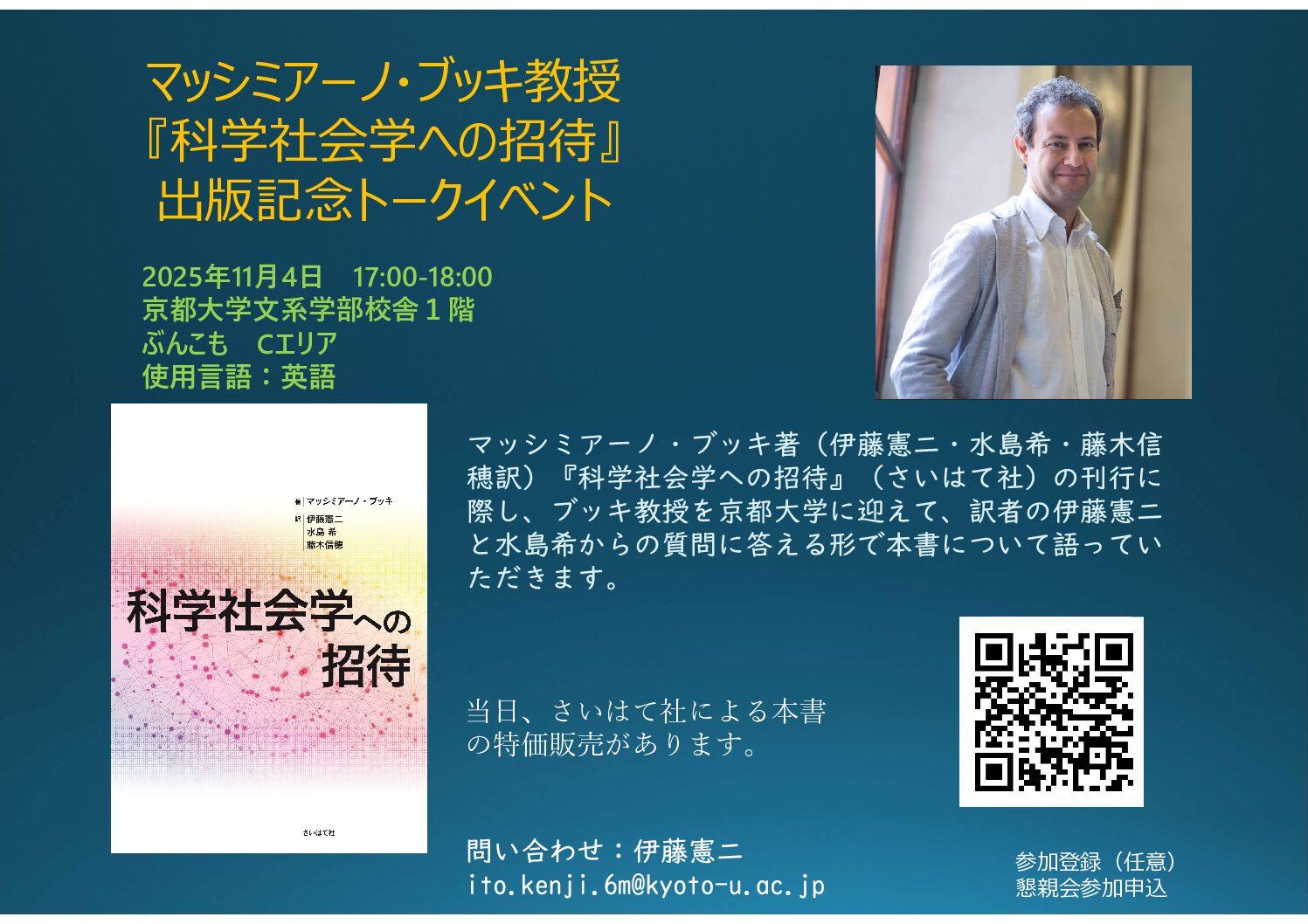 これを記念し、ブッキ教授を京都大学に迎えて、訳者の伊藤憲二と水島希からの質問に答え