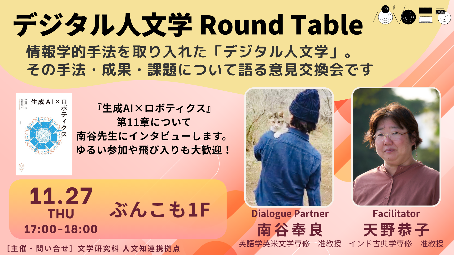南谷さんの研究について聞いてみたい方、デジタル人文学に興味のある方、ぜひ一緒に議論しましょう。