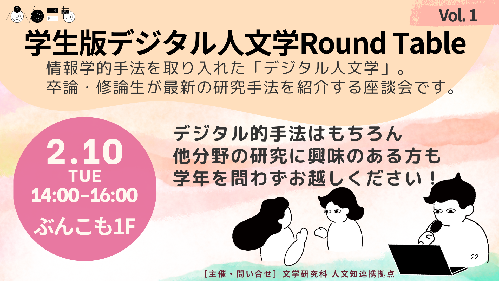 2026年2月10日(火)に「学生版デジタル人文学Round Table」がぶんこもで開催されます。